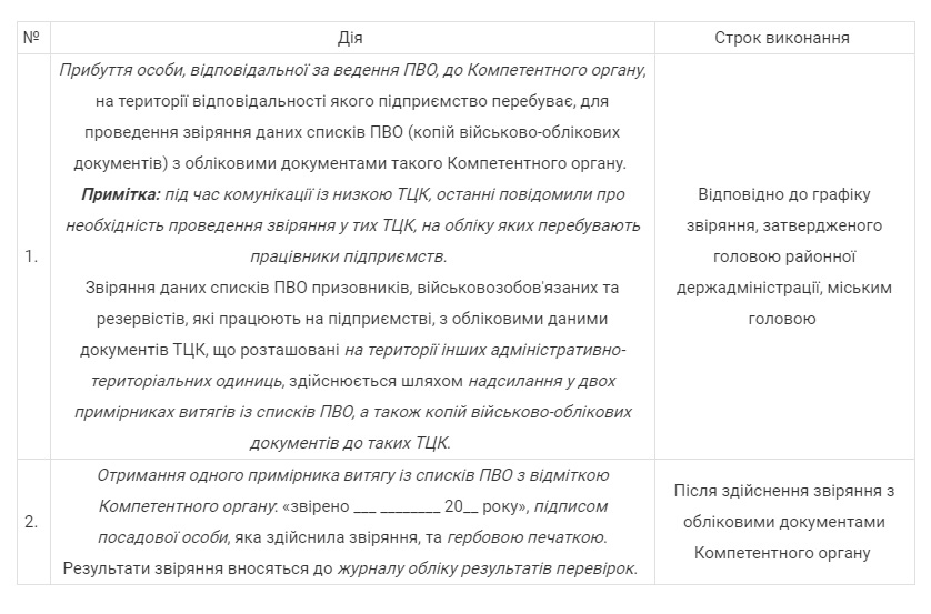 Після отримання оригіналів військово-облікових документів працівників здійснюється безпосереднє звіряння облікових даних у Компетентному органі, що включає, з огляду на п. 46 Порядку, наступні дії: