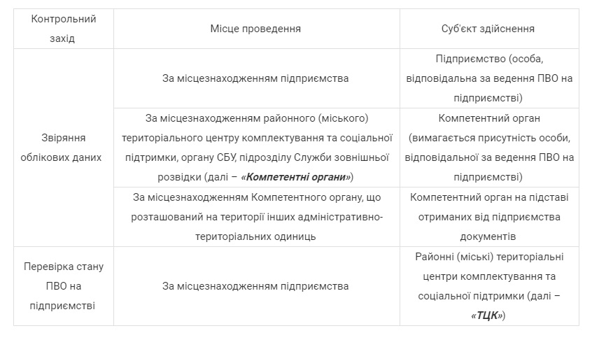 Відповідно до п. 80 Порядку, перевірка стану ПВО на підприємстві здійснюється ТЦК відповідно до планів, затверджених розпорядженнями голів відповідних районних, районних у м. Києві та м. Севастополі держадміністрацій, міських голів.